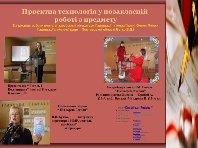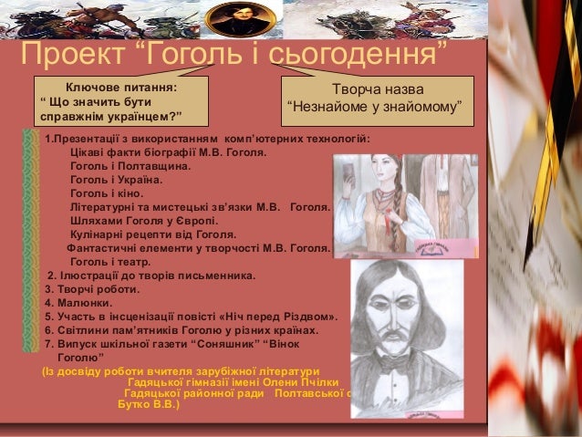 Проект “Гоголь і сьогодення” 1.Презентації з використанням комп’ютерних